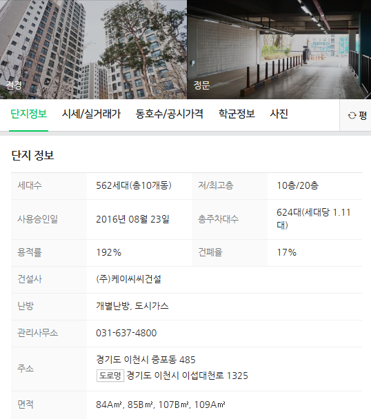 이천 증포동 KCC아파트 25편 매매물건입니다